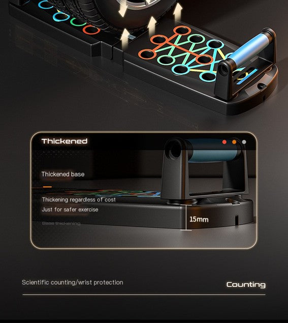 Convierte flexiones y planchas en un entreno completo. La TrueLife Push-Up Pro Board™ guía la posición de manos por colores, cuenta repeticiones y permite anclar bandas para trabajar pecho, espalda, hombros, core y brazos con técnica y progresión.